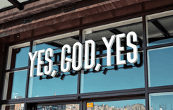 Відчуття, коли знаходиш щось дійсно круте і цінне, річ мрії, доленосну річ, та ще й за половину ціни, знайоме кожному. Нам воно також було знайоме, але наше завдання було особливим: нам потрібно було перетворити це відчуття на бренд. Так ми придумали назву – Yes, God, Yes. Бо ж хіба не це кричить кожна клітинка душі, коли хапаєш з полиці останню сукню свого розміру з шаленою знижкою? Саме це, та ще деякі слова, проте їх вже не можна говорити вголос.